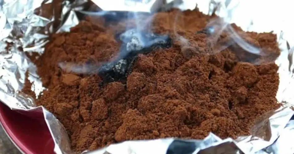 Simplemente, déjalos secar al sol y, una vez secos o secos, colócalos en un recipiente sobre el que, en la base, habrás puesto una lámina de papel de aluminio. Tenga mucho cuidado, queme sus posos de café con un fósforo o encendedor.
