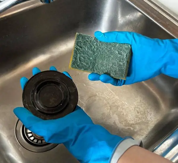 - Vierta unas gotas de su aceite esencial favorito en el fregadero.
