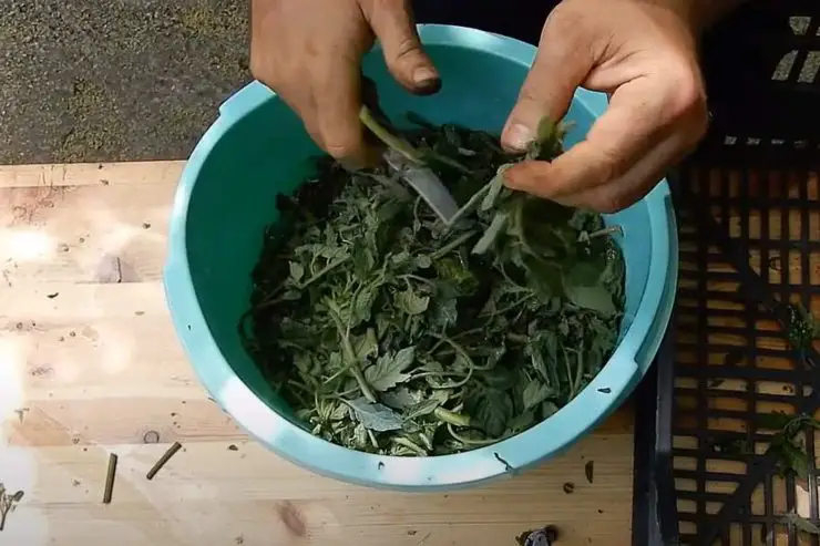 Para preparar el macerado de tomate, remoja las hojas y el tallo de la planta en agua, preferiblemente agua de lluvia. Elija un recipiente de cerámica o, alternativamente, puede optar por un contenedor de plástico. Para obtener un insecticida natural perfecto, recomendamos utilizar 250/300 gramos de tomatera por cada litro de agua. Es preferible no utilizar los frutos dentro del macerado, ya que son menos efectivos.