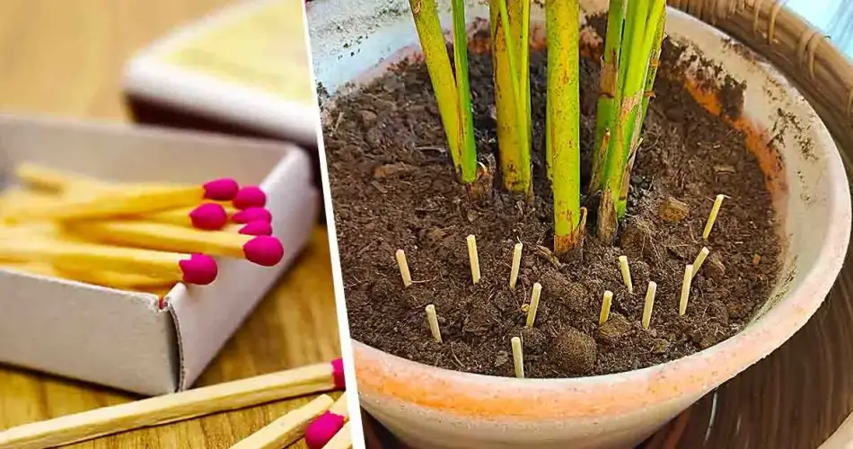 Solo necesitarás 5-6 cerillas normales, que clavarás en el suelo con los cogollos hacia abajo, a unos centímetros del borde de la maceta.