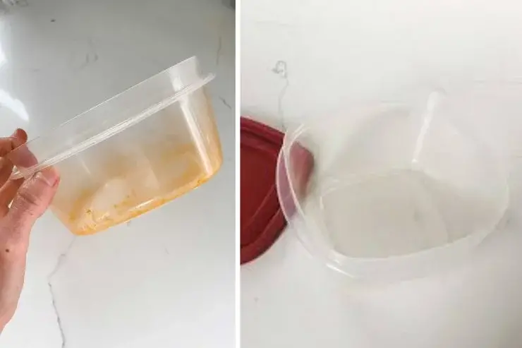 Si con demasiada frecuencia luchas con los residuos de comida que se deslizan casi indeleblemente en el fondo y los bordes de tu contenido de plástico, te alegrarás cuando descubras que eliminarlos es, de hecho, muy simple.